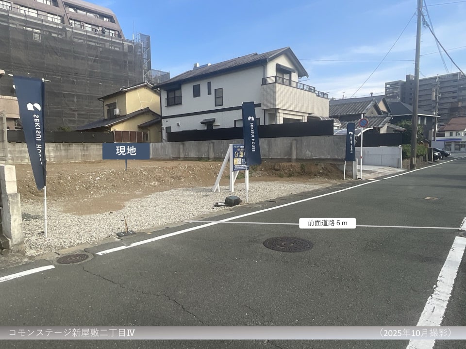 開放感抜群の6m全面道路、快適な車の出し入れを実現。安全性と邸宅街の品格を両立。(撮影日:2025年10月30日)