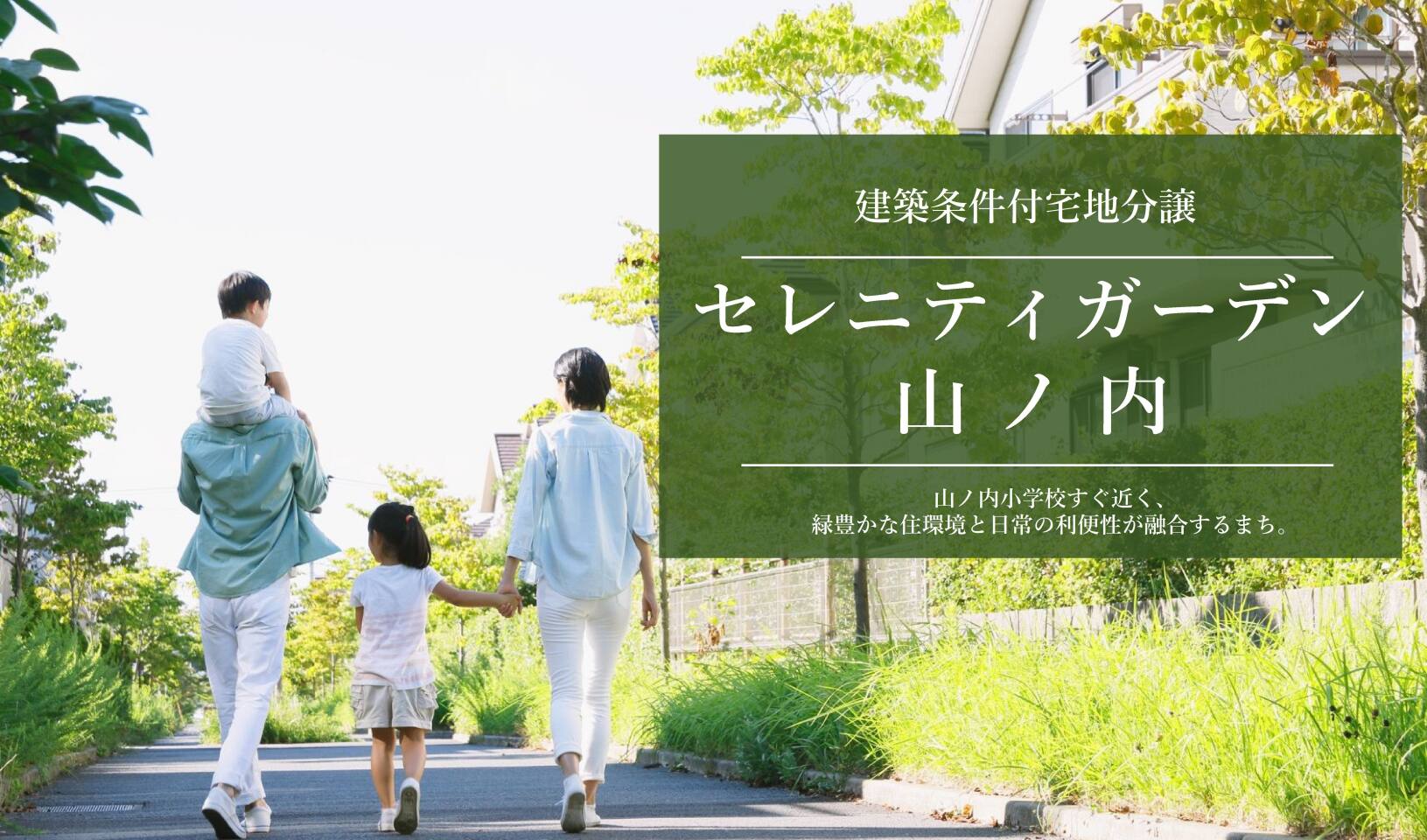 山ノ内小学校がすぐ近くにあり、緑豊かな住環境でありながら、日常の利便性に恵まれた立地の【セレニティガーデン山ノ内】。