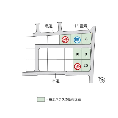 以下の号地は、現在申込が入っております。詳細についてはお問い合わせ願います。