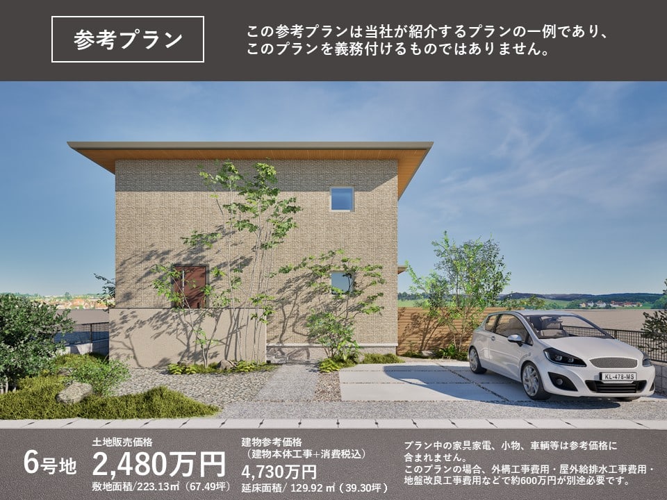 土地価格2,480万円/建物参考価格(建物本体工事+消費税込)4,730万円/敷地面積223.13㎡(67.49坪)/延床面積129.92㎡(39.30坪)