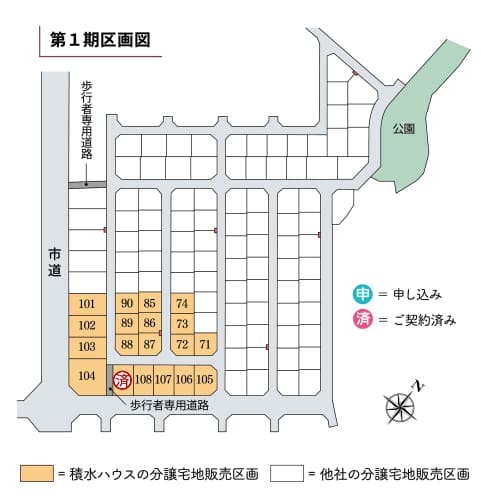 大規模分譲地ならではの、歩道や公園など美しく整備されたまちなみが特徴です。