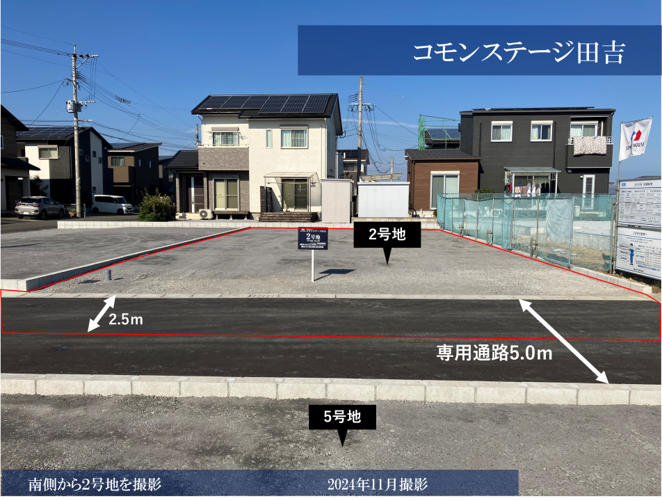 分譲地南側から5号地を撮影