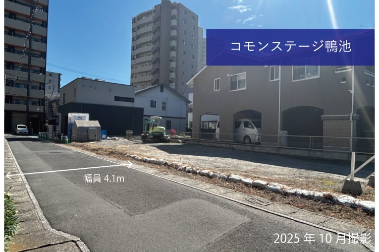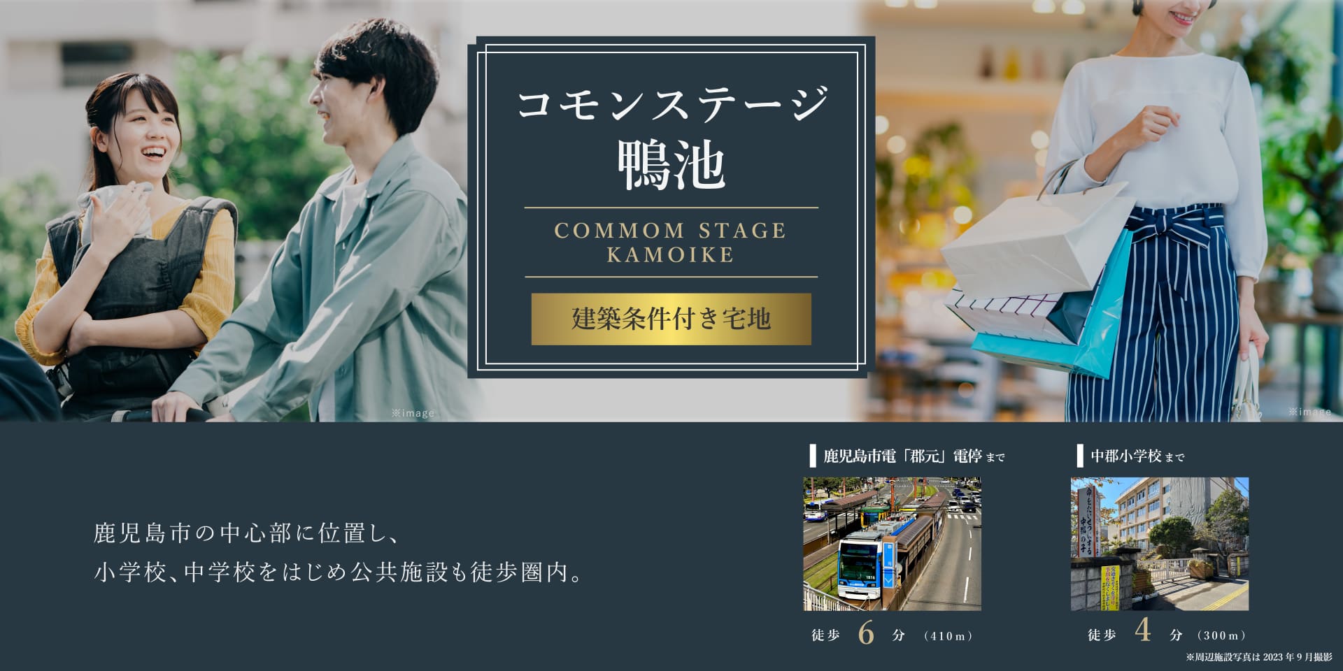 鹿児島中央駅から現地へは、鹿児島県道20号線沿いの信号「鴨池電停」を右折し、約180m道なりに進んで頂くとコモンステージ鴨池です。