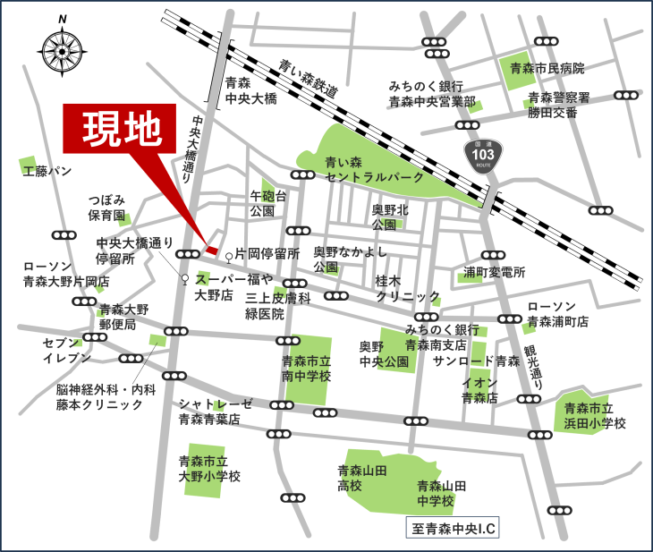 青森中央大橋そばで青森市中心部へのアクセスが容易です。