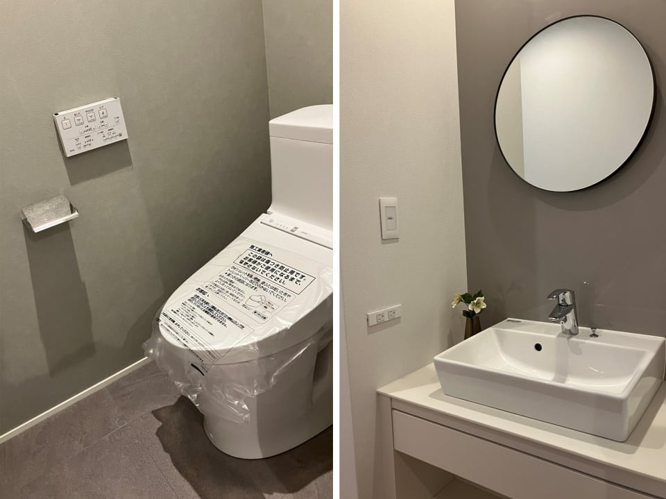 洗面台2か所/ダインコンクリート外壁/ビルトインガレージ/フルフラットバルコニー/天井付空気清浄機「エアミー」/