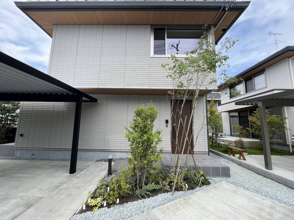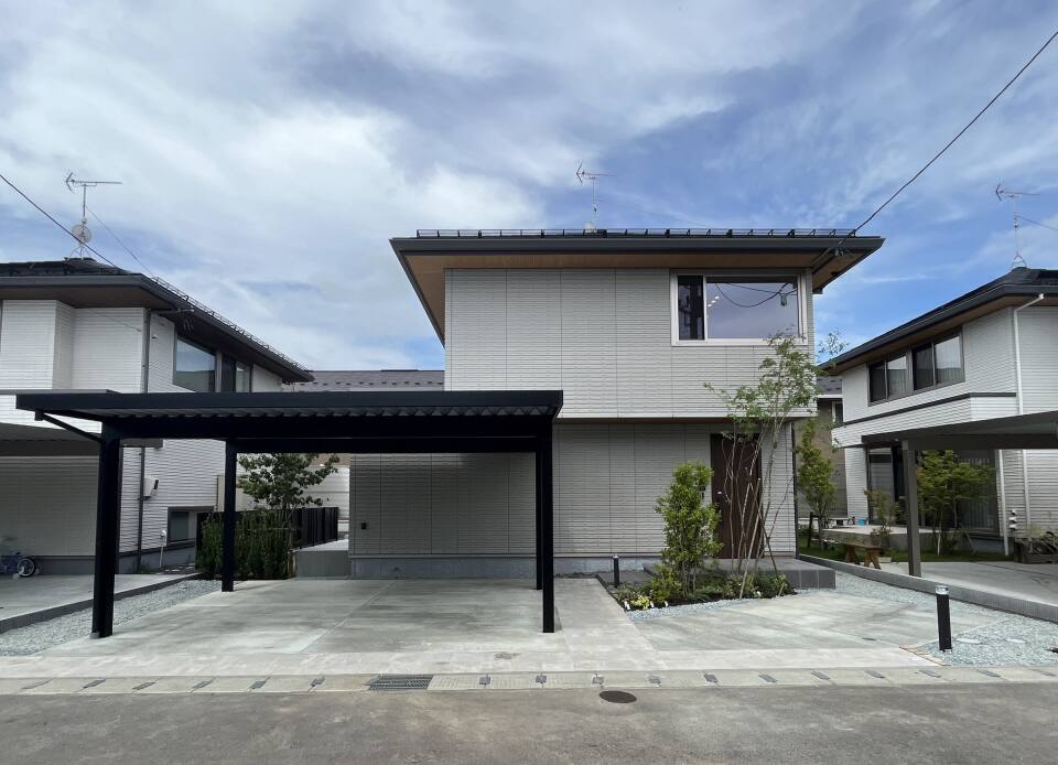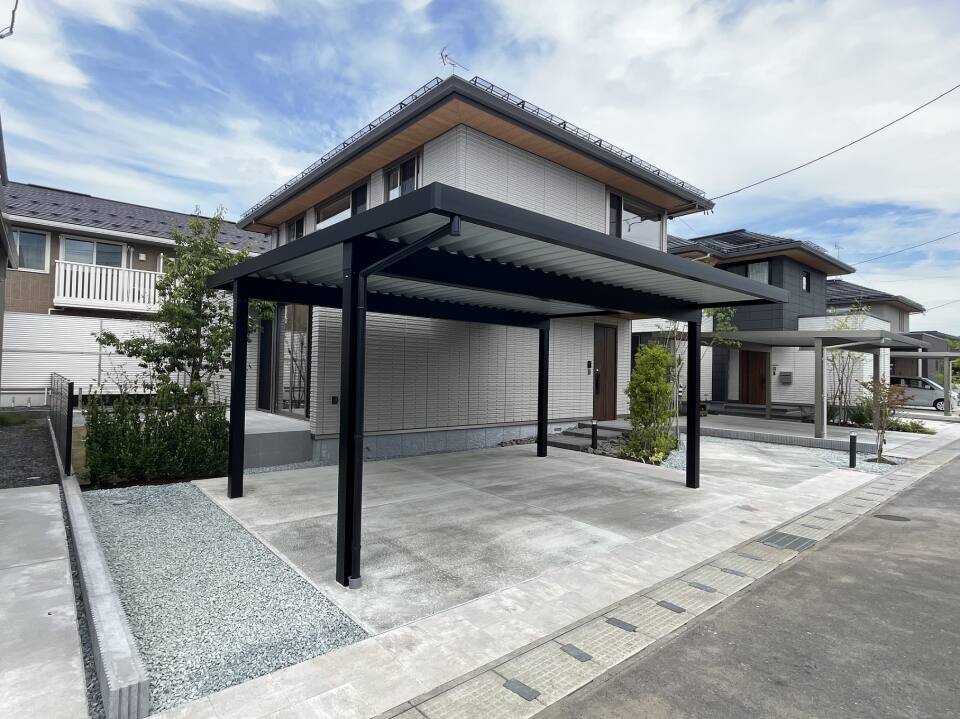 挽板フローリング/カーポート/ダインコンクリート外壁/太陽光発電/天井付空気清浄機「エアミー」/スマートイクス