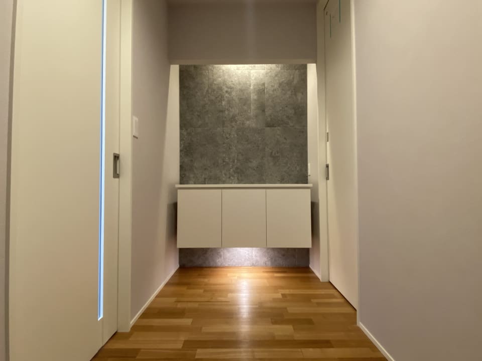 家族やお客様をお迎えする玄関には、タイルと間接照明で空間を演出、収納量も欠かさず、こだわりの玄関ホールです。