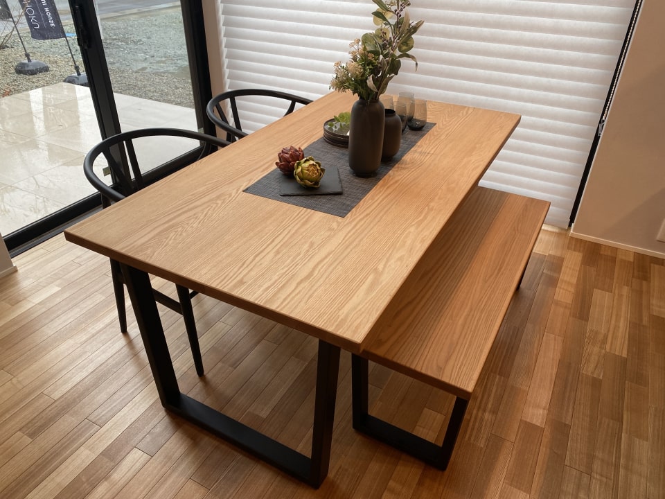 使い勝手の良いテーブルとイス、ベンチを組み合わせたダイニングセット