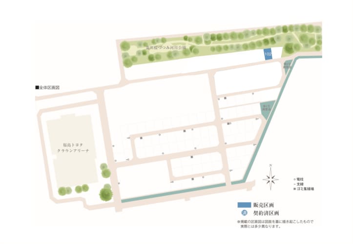 福島市仁井田にある積水ハウスの分譲地「コモンステージ仁井田<分譲住宅102号地>」は、全103区画【うち、積水ハウス分29区画・総戸数29戸(うち建売6戸)】の分譲宅地です。「福島交通バス」の「国体記念体育館入口」停留所まで徒歩8分の立地です。荒川桜づつみ河川公園までは徒歩3分です。ヨークベニマル吉倉店は徒歩21分、福島市立吉井田小学校までは徒歩22分です。また、お引渡し後も計画的なメンテナンスを定期的にサポートし、住宅の資産価値や快適さを長く保つように配慮しています。