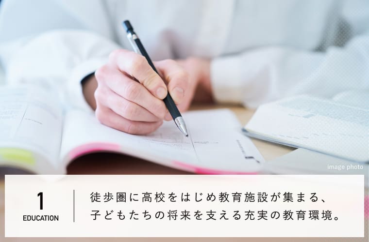 ![]() 徒歩圏に保育園・幼稚園、公立の小・中学校、国立の小・中学校や私立の小・中・高校など市内屈指の教育施設が集まるエリアで、子育て世代に優しい充実の教育環境です。桜美公園など緑豊かな自然に恵まれた住環境が、子どもたちの健やかな成長を支えます。 |