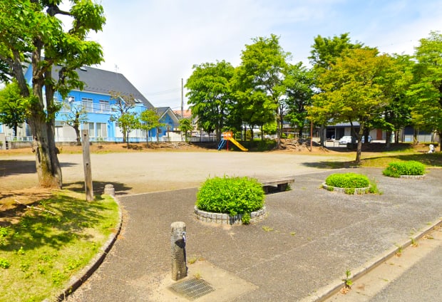 自治医大駅前の住宅地の中にある静かで緑豊かな公園は、パンダの像が目印です。