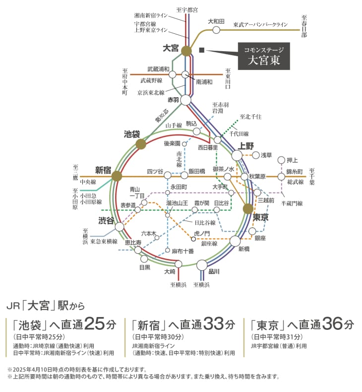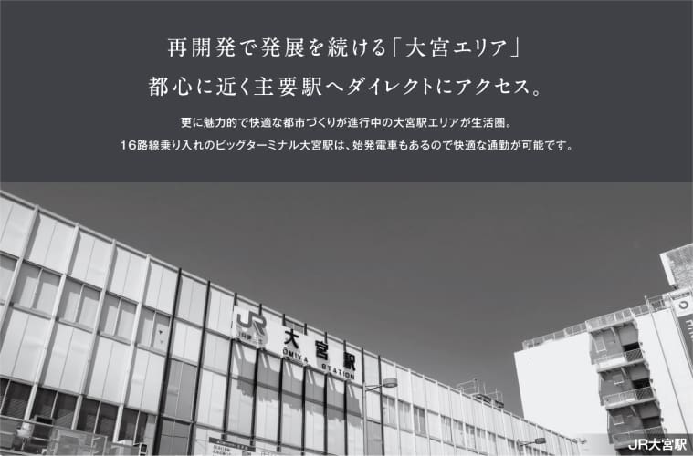 最寄りの「大宮」駅は、在来線10路線と新幹線6路線が発着するビッグターミナル。交通の要衝で都心や全国の各都市へスピードアクセスできます。