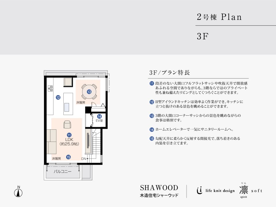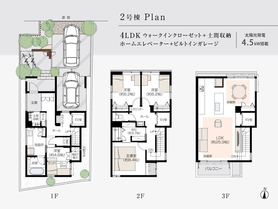 ●陶版外壁ベルバーン●グリーンファーストゼロ●太陽光発電システム容量(4.5kW)●断熱等級6●高断熱仕様●HEMS●スマートイクス●アメニティ換気システム●エレベーター●エコジョーズ●エアコン(4台)●床暖房(LD)●無垢フローリング(全階)●IHクッキングヒーター●食器洗浄乾燥機●浄水器●キッチンタッチレス水栓●ガス衣類乾燥機●ランドリーロープ●保温浴槽付ユニットバス●浴室換気乾燥暖房機●ふちなし節水多機能トイレ●宅内LAN配管●居室照明●電動シャッター(1F)●モニター付インターホン●電気錠(パッシブキー/カード)●防犯防災合わせガラス※1F、3Fバルコニー面●遮熱断熱高性能ペアガラスサッシ●宅配BOX●「5本の樹」計画●プラットフォームハウスタッチ