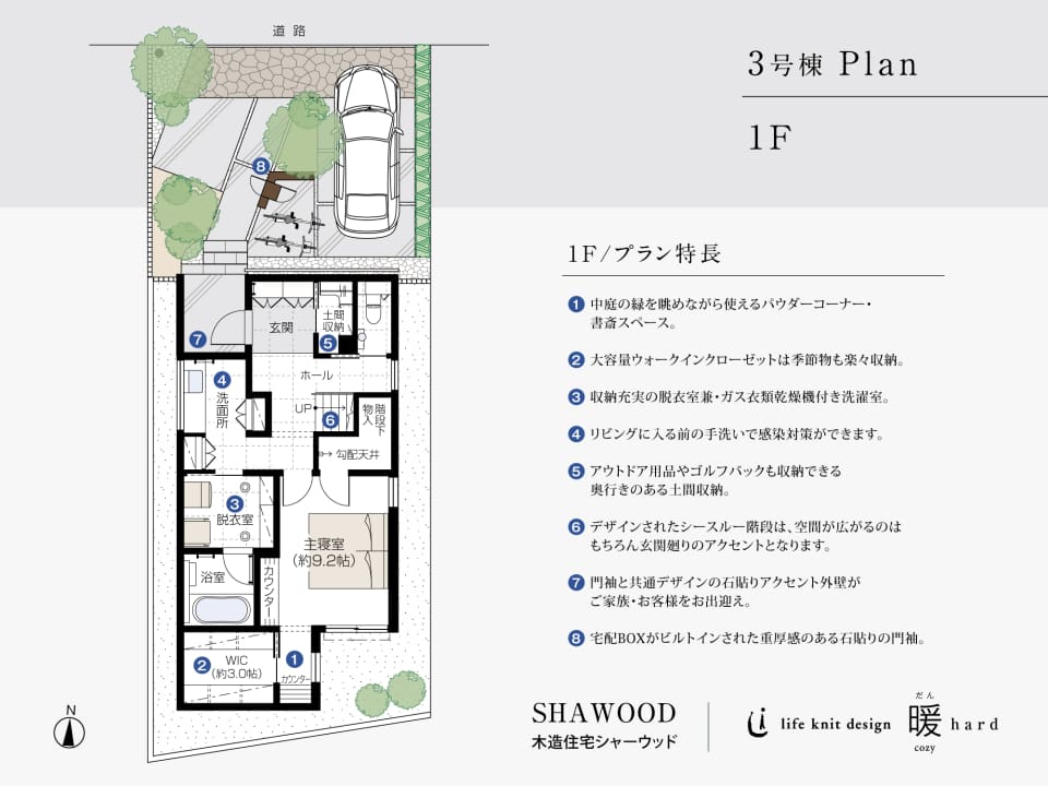 ※掲載の家具は販売価格に含まれます。また、家電・小物・外構図の車両は販売価格には含まれません。※パースは図面を基に描き起こしたものです。※パース、外構図に描かれている植栽の様子には予定種の概ね3年後のイメージに近い画像を用いておりますが、販売時は、苗木や緑量の少ない状態となります。植栽の育成には数年を要するものもありますし、成長後の形状も様々となります。