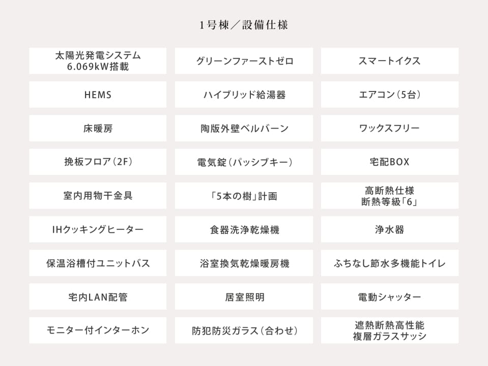※掲載の家具、家電、小物は販売価格には含まれません。※外構図に描かれている植栽の様子には予定種の概ね3年後のイメージに近い画像を用いておりますが、販売時は、苗木や緑量の少ない状態となります。植栽の育成には数年を要するものもありますし、成長後の形状も様々となります。