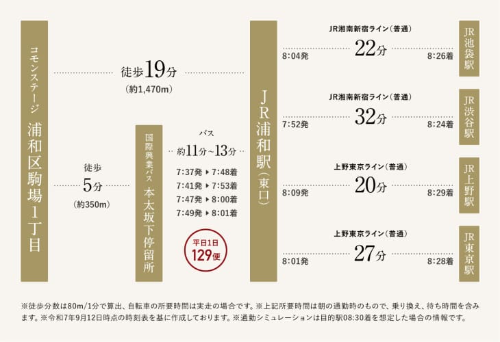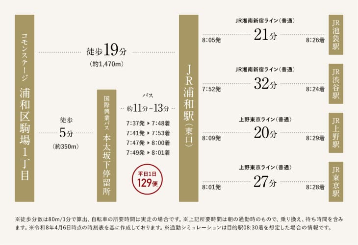 JR浦和駅へのアクセスは、徒歩5分の本太坂下停留所からバスの利用も便利です。