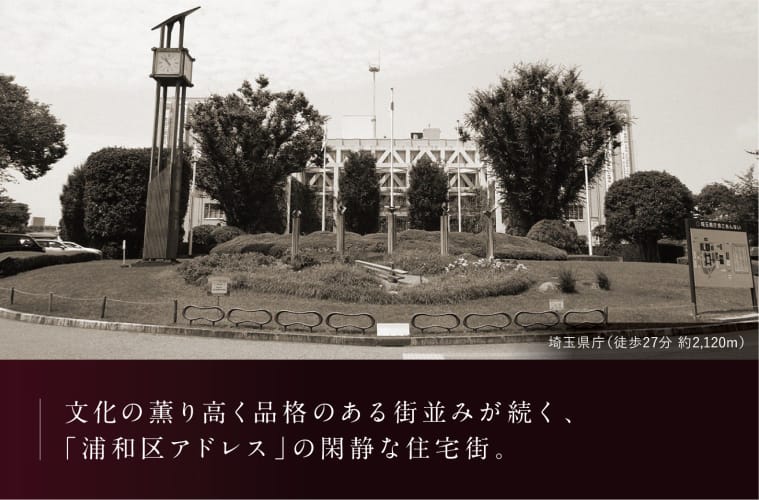 江戸時代から栄え、歴史と伝統を重ねてきた文化の薫りが息づく街。さいたま市の行政が集中し、暮らしに役立つ公共施設が揃う文教都市で、都市の利便性と品格のある街並みが注目されています。