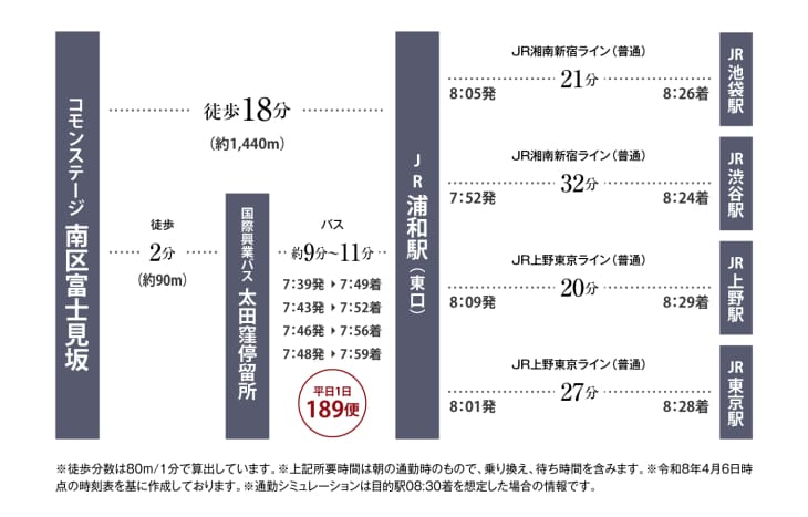 JR「浦和」駅まではバスのご利用も可能。雨の日の通勤通学も快適です。