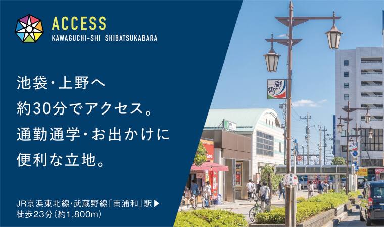 ![]() JR京浜東北線・武蔵野線「南浦和」駅とJR京浜東北線「蕨」駅の2駅が利用可能。上野駅・東京駅までダイレクトで繋がる鉄道アクセスを誇っています |