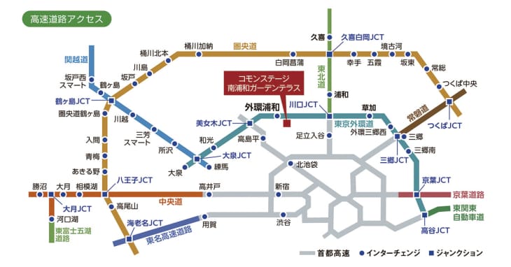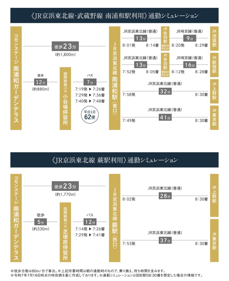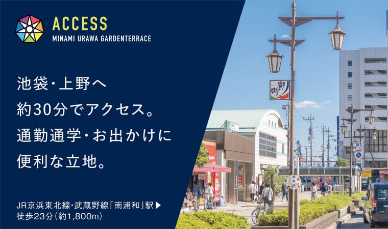 JR京浜東北線・武蔵野線「南浦和」駅とJR京浜東北線「蕨」駅の2駅が利用可能。上野駅・東京駅までダイレクトで繋がる鉄道アクセスを誇っています