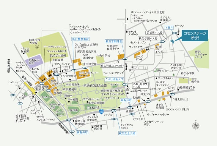 多彩な商業施設が集まる「所沢」駅も生活圏内。自転車でのアクセスが良好な街並みが魅力