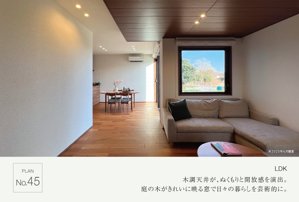 木調天井が、ぬくもりと開放感を演出。
