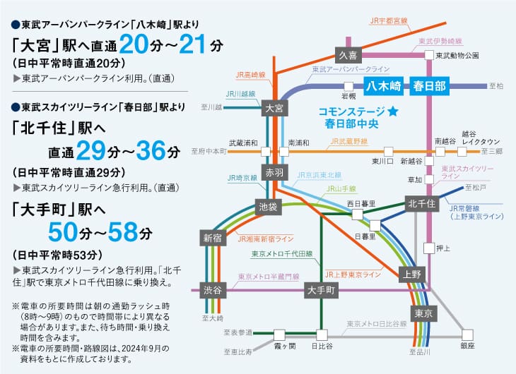 春日部駅は2路線が利用でき、都心までスムーズに移動ができます。