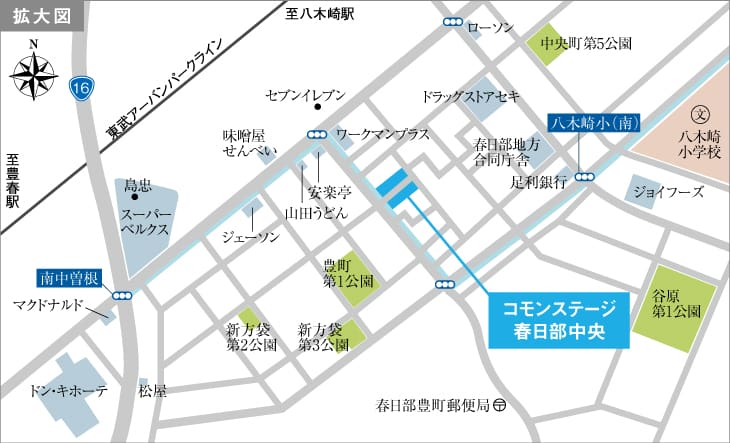 2つの駅が使えるアクティブな環境。住宅街の落ち着きと、春日部駅の利便性が調和した魅力的なエリアです。