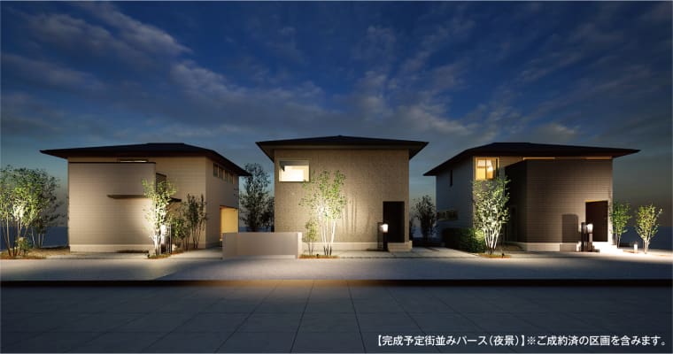 ![]() 完成予定街並みパース(夜景)※ご成約済の区画を含みます。 |