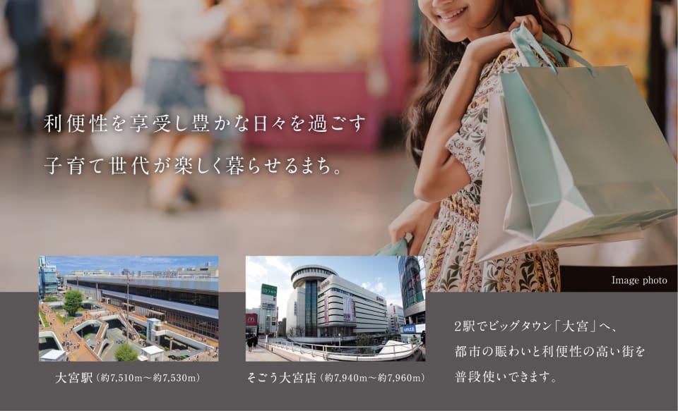 - 24時間営業のスーパーや、ショッピングモールがある利便性の高いまち。周辺には公園が点在し、子育て世代に安心の住環境です。