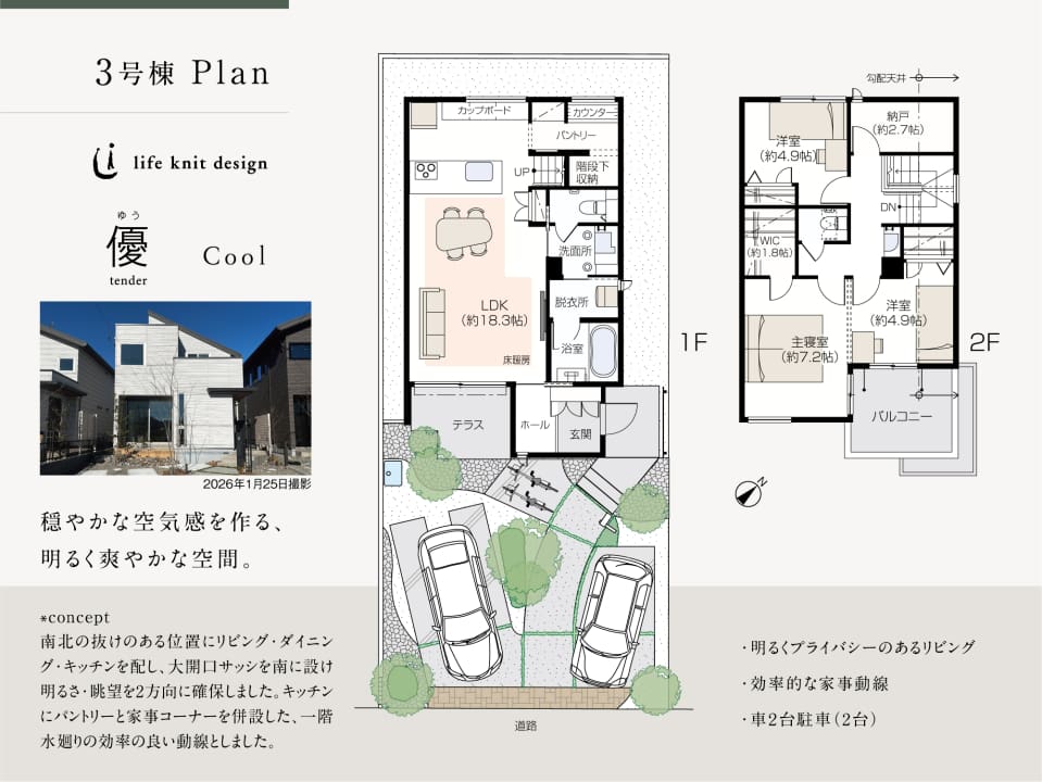 2LDK+土間収納+パントリー+WIC → 将来的に有償工事にて3LDKに変更可能