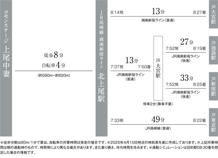「北上尾」駅から湘南新宿ラインと上野東京ラインの2路線が利用可能で、山手線の東西の主要駅へダイレクトにアクセスします。