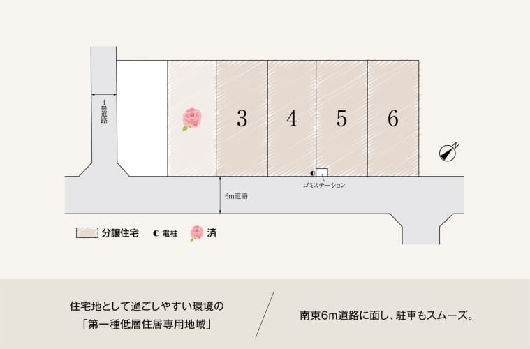 【6号棟 設備仕様】●ファミリースイート●グリーンファーストゼロ●太陽光発電システム容量(4.10kW)●アメニティ換気システム●エコジョーズ●エアコン(2台)●床暖房(LD)●陶版外壁ベルバーン●ワックスフリー●挽板フロア●電気錠(パッシブキー)●室内用物干金具●5本の樹計画●高断熱仕様●IHクッキングヒーター●食器洗浄乾燥機●浄水器●保温浴槽付ユニットバス●浴室換気乾燥暖房機●ふちなし節水多機能トイレ●宅内LAN配管●居室照明●電動シャッター(1F)●モニター付インターホン●防犯防災合わせガラス※1F、2Fバルコニー面●遮熱断熱高性能ペアガラスサッシ