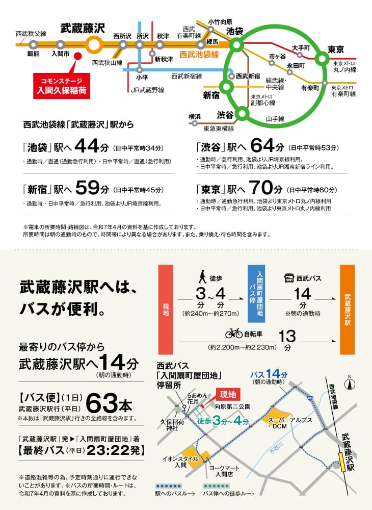急行停車駅「武蔵藤沢」駅から、「池袋」駅へスムーズアクセス。西武池袋線は、東京メトロ有楽町線・副都心線への直通電車があり、都心や横浜方面へダイレクトにアクセスできます。