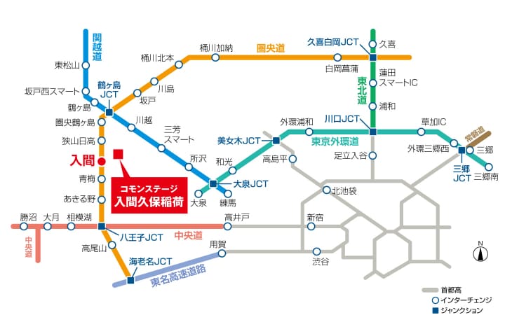 圏央道「入間IC」へアクセスしやすく都心や郊外への車移動がスムーズ。