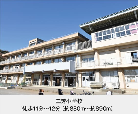 開校120年を超える歴史ある小学校。現地西側のそよかぜ保育園から正門まで歩道を利用して通学可能です。