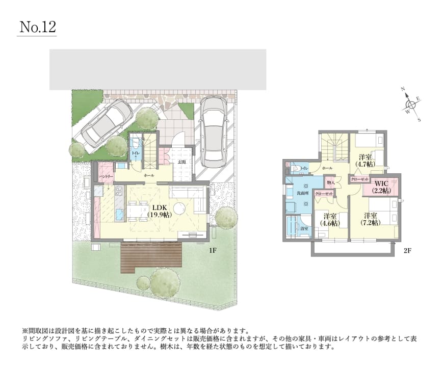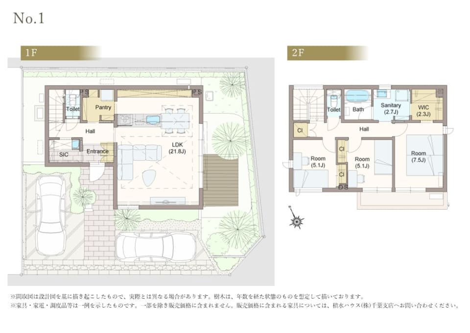 第一種低層住居専用地域の穏やかな住宅街に構える一邸。49坪超のゆとりある敷地に2台の駐車スペースを確保した3LDKの住まいです。