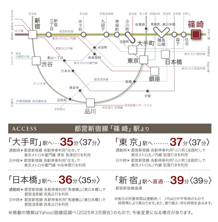都営新宿線「篠崎」駅から「新宿」駅へダイレクトアクセスが可能。