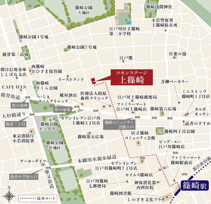 東京都立篠崎公園をはじめ、豊かな緑につつまれた閑静な住宅街でありながら、都心へのアクセスも良好なロケーションです。