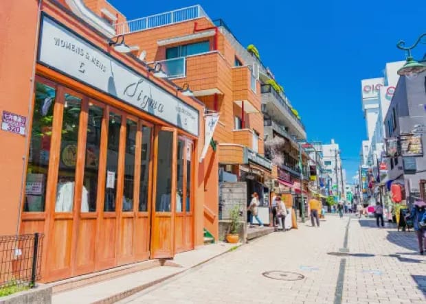 全長約200mの通りに、ファッション、雑貨、飲食店などの人気店が軒を連ね、休日になると多くの人で賑わいます。