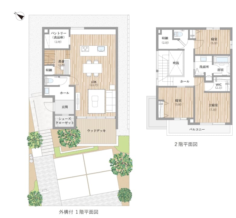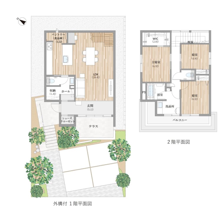 ※平面図・パースに掲載の植栽は成長した5年後のイメージです。
