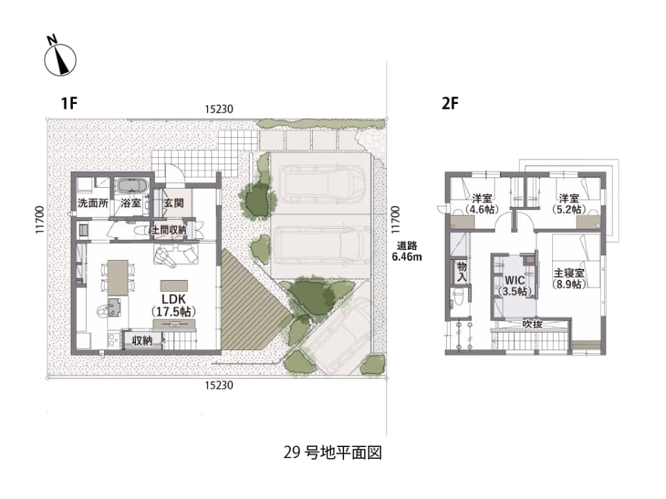 ※掲載の内観、外観は完成予定パースです。※家具・家電・小物・自動車は販売価格に含まれません。※植栽の様子には、予定種の成長に近い画像を用いておりますが、販売時は苗木や緑量の少ない状態になります。植栽の育成には数年を要するものもありますし、成長後の形状も様々となります。