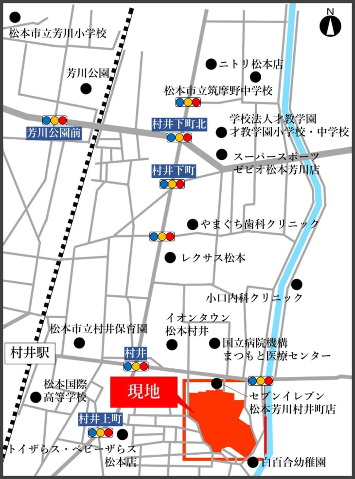 分譲地から、JR篠ノ井線 村井駅まで約1140m(徒歩15分)