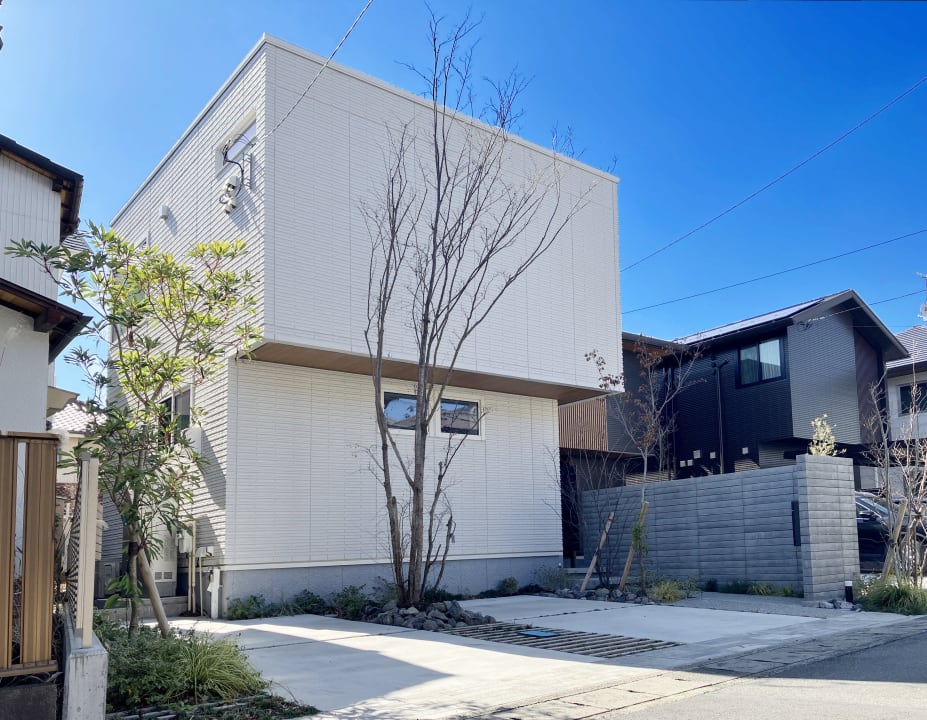 ボックスをオーバーハングさせた、シンプルながら立体的に魅せる外観です。