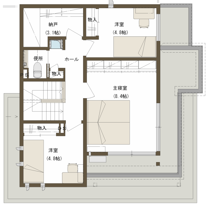 ●3LDK+土間収納+ヌック+WIC+納戸