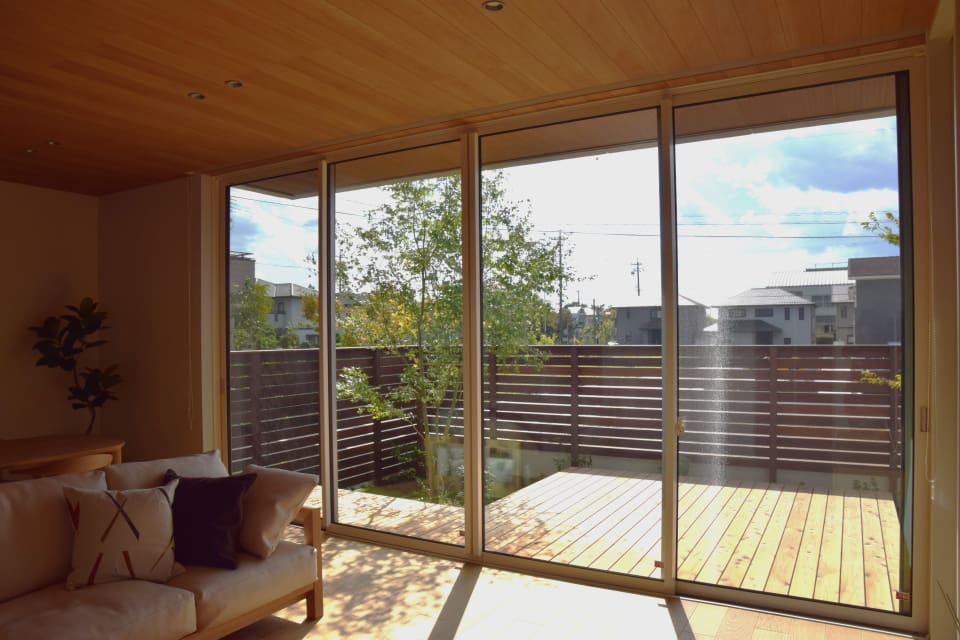 ・リビングの大開口はデッキへと続き、庭との一体感を生み出します。
