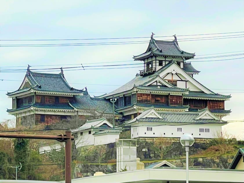 - 福知山城まで徒歩30分(約2400m)。1579年に明智光秀が築いた城。天守閣内部では、明智光秀や歴代城主に関する資料や映像が展示されています。受付では御城印の販売、福知山城スタンプの設置がされており、続日本100名城スタンプラリーの参加者も訪れています。