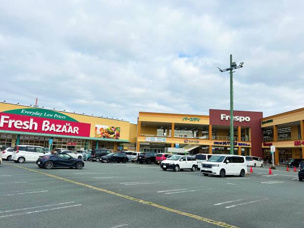 スーパーや100円ショップ、ドラッグストア、ファッションなどが揃う商業施設。駐車場があり、休日のまとめ買いの際などに便利です。