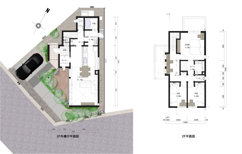 ※平面図に掲載の植栽は成長後のイメージに近い画像を用いていますが、販売時は苗木や緑量の少ない状態です。育成には数年を要するものもあり、成長後の形状も様々です。