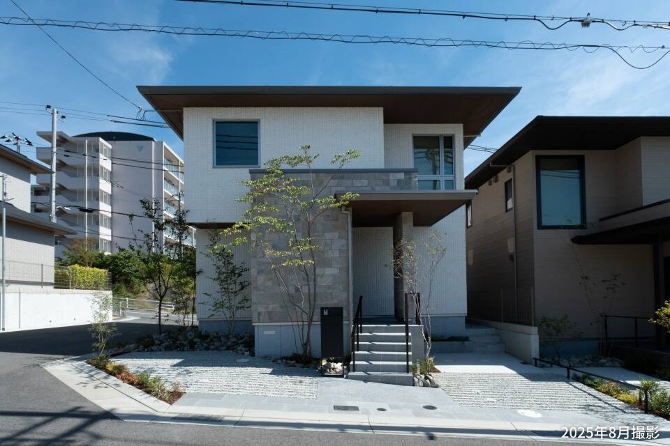 【34号地/外観】感性テーマは「優」。ずっと変わらない優しく穏やかな空気感。使い勝手がよく、誰もが暮らしたくなる穏やかな住まいです。/2025年8月撮影